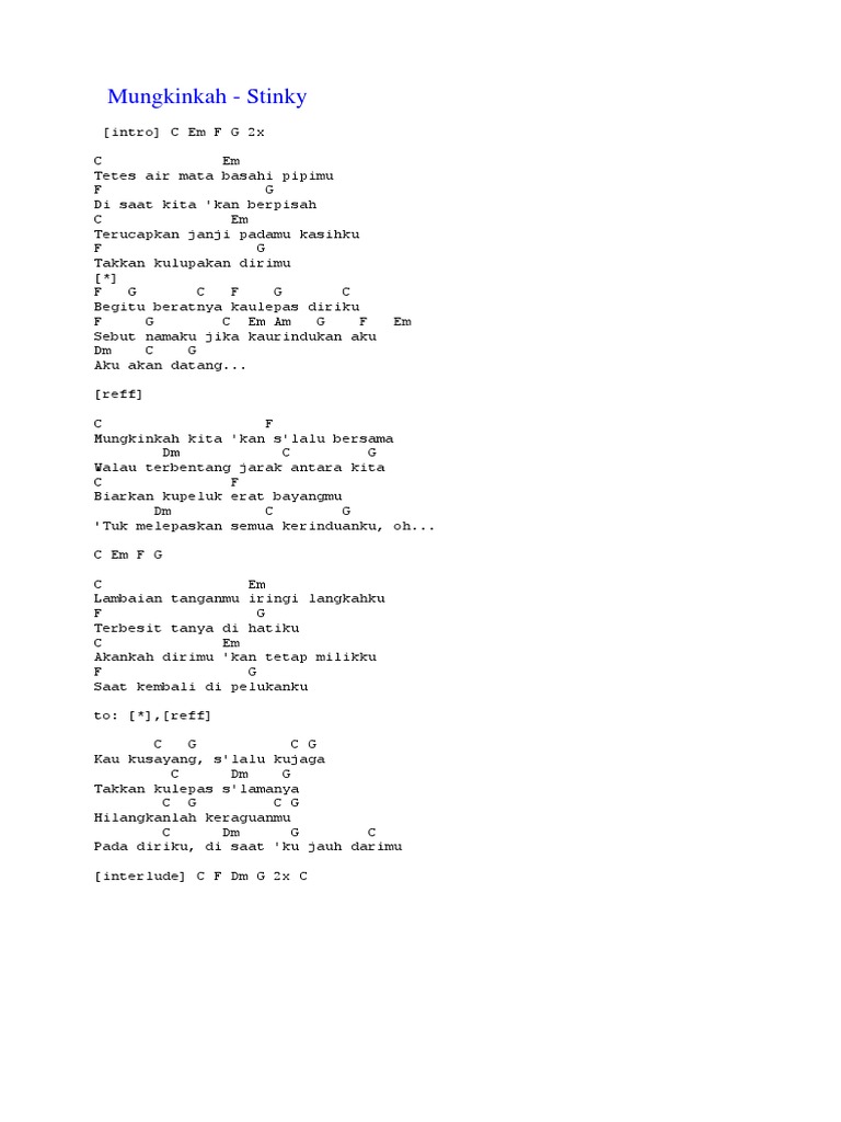 D a bm a pagi. Am dm g c f dm e am f akan ku jaga g c kisah cinta kita dm f jangan pernah ada e hati yang terluka am f sungguh ku takut g c jika engkau jauh dm am karna aku takut b e kau berpaling dariku reff. E g c m cinta ku tak mampu membuatmu terluka c f m ku tak ingin kau kecewa. E g c m cinta mengapa ku takut kehilanganmu c f m ku tak ingin menyakiti a b begitu besar cintamu.