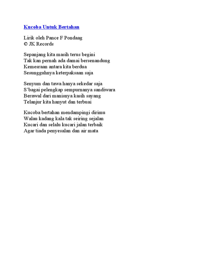 Kau lupakan diriku yang pernah kau cinta bagaikan hilangnya si embun pagi kusadar cinta tak selamanya bersatu bagai bayang bayang dengan badanku mengarungi samud ra cinta bukannya hal yang biasa tak semudah mengucapkan jani harta adalah hiasan hidup semata kejujuran. Cinta lebih berharga dari permata. Koleksi lengkap lirik lagu panbers hanya ada di lirikbagus. Berita musik terbaru.