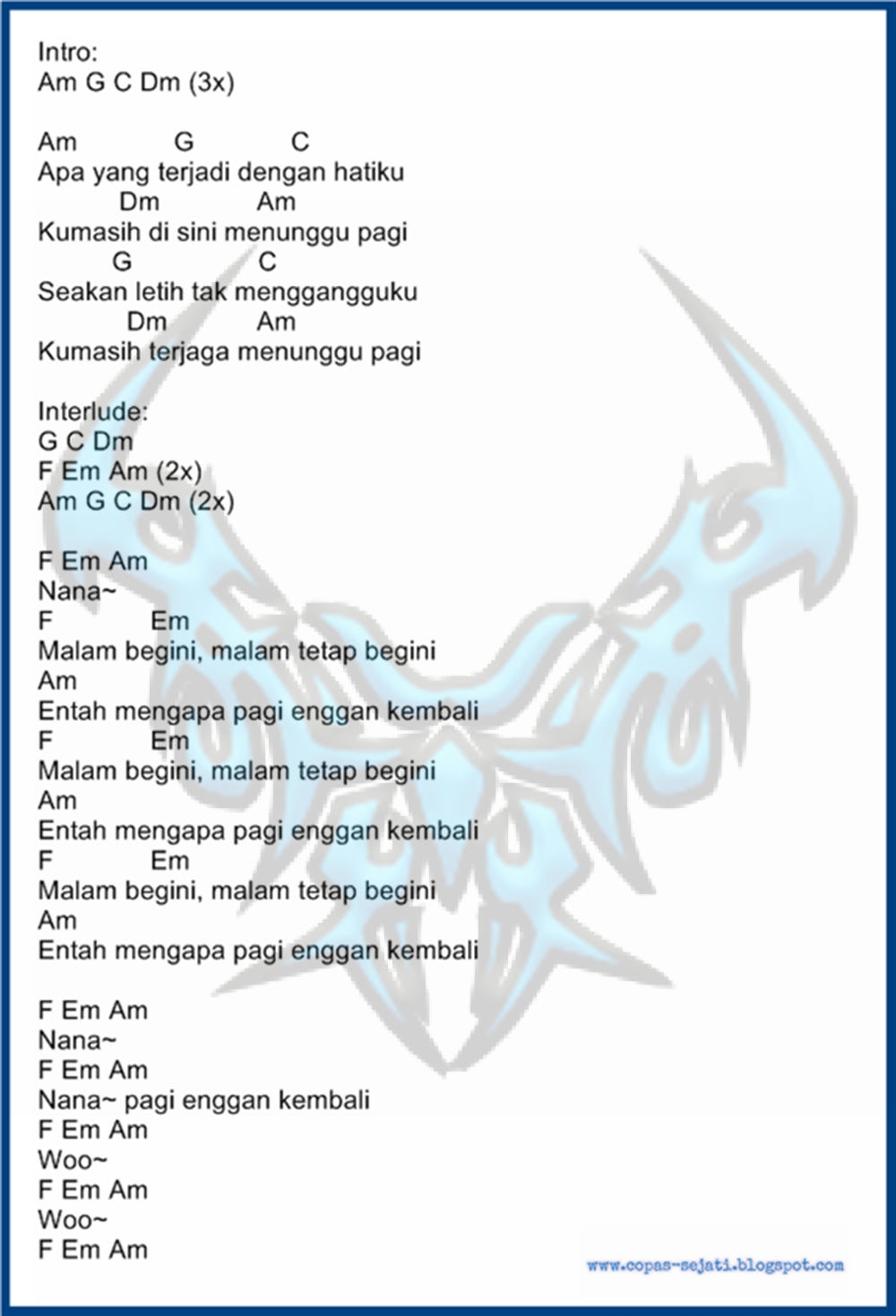 Segala daya em d am untuk mewujudkan keinginanmu g d em d tapi terjegal. Em d f g am em d f g apa yang terjadi dengan hatiku am em ku masih di sini menunggu pagi d f g seakan letih tak menggangguku am em ku masih.