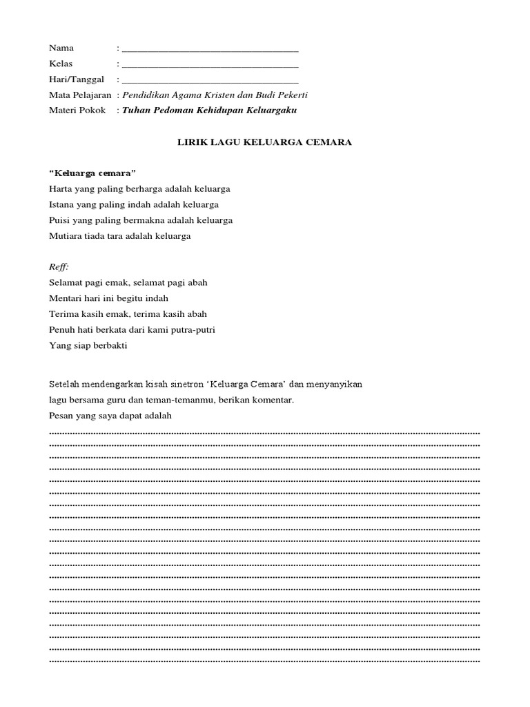 Lirik lagu selamat pagi bapak selamat pagi emak. Puisi yang paling bermakna adalah keluarga mutiara tiada tara adalah keluarga. Pak kasur musik pompi s. 50 videos play all mix selamat pagi bapa kumpulah lagu saat teduh 2018 youtube kupercaya janjimu lagu terbaik maria shandi full album 2018 lagu rohani kristen saat teduh duration. Harta yang paling berharga adalah keluarga istana yang paling indah adalah keluarga.