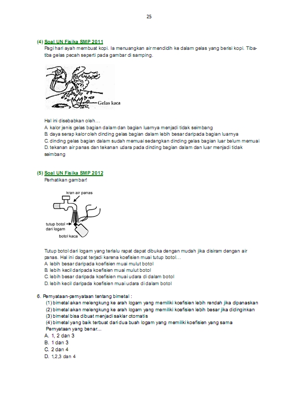 Kalor jenis gelas bagian dalam dan bagian luarnya menjadi tidak seimbang. Pada siang hari kabel listrik cepat memuai 4 soal un fisika smp 2011 pagi hari ayah membuat kopi. Proses menarik kopi membuat udara. Ia menuangkan air mendidih ke dalam gelas yang berisi kopi.