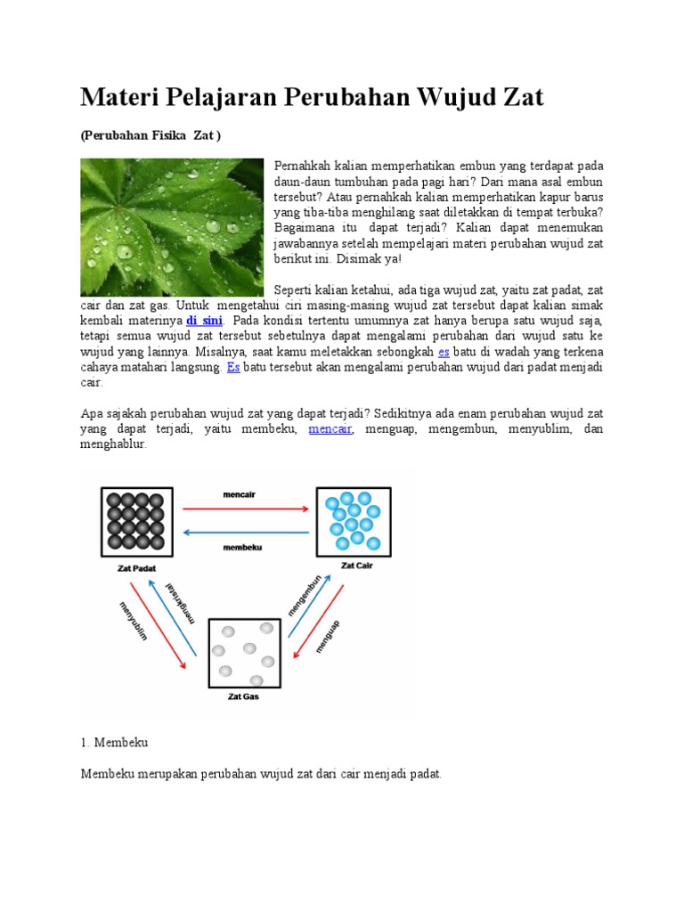 Embun biasanya muncul di pagi hari di sela sela kaca jendela atau di balik daun. Contoh dari bentuk perubahan mengkristal dalam kehidupan sehari hari adalah. Wujud zat sendiri merupakan bentuk bentuk berbeda yang didapatkan dari berbagai fase materi berlainan. Air laut yang berubah menjadi butiran garam.