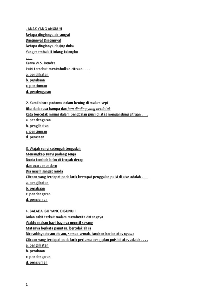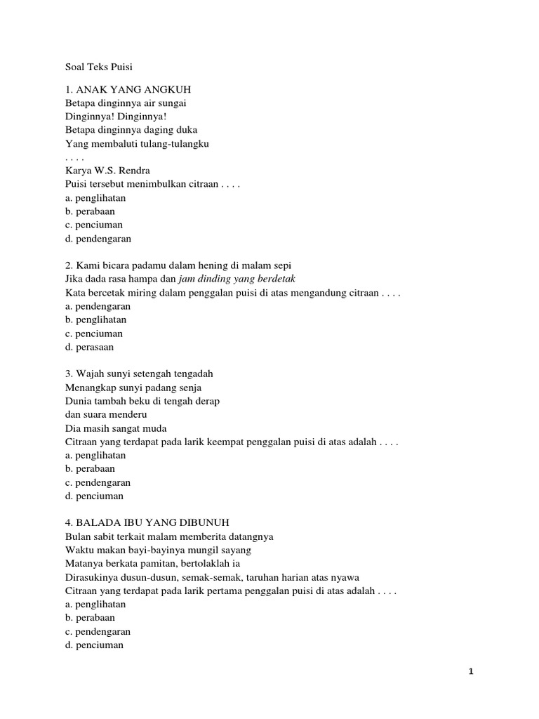 Hormatilah gurumu sebab walaupun hidupnya menderita mereka 3. Orang yang paling kita cintai dalam hidup. Larik ke 2 puisi di atas mengandung citraan. Dibawah ini penjelasan mengenai puisi disertai dengan contoh.