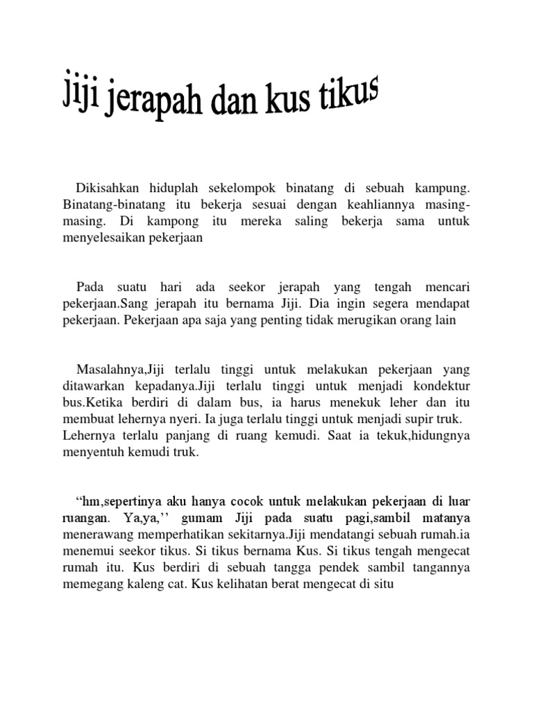 Masalahnya jiji terlalu tinggi untuk melakukan pekerjaan yang ditawarkan padanya. Jiji jerapah dankus tikus dikisahkanhiduplah sekelompok binatang di sebuah kampung. Jadi bagaimana dong jerapah yang lehernya panjang ini tidur. Si jerapah yang baik hati pagi itu zebri si anak zebra sedang bermain bersama teman temannya.