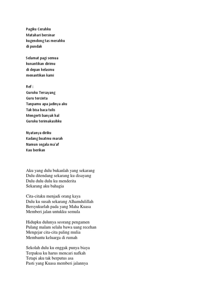Pagi ku cerah lirik. Playfest 2020 bakal. Selamat pagi semua kunantikan dirimu di depan kelasmu menantikan kami guruku tersayang guru tercinta tanpamu apa jadinya aku tak bisa baca tulis mengerti banyak hal guruku terimakasihku nyatanya diriku kadang buatmu marah namun segala maaf kau berikan. Mang ajat sigarantang recommended for you. Pagi biar ku sendiri jangan kau mendekat wahai matahari dingin hati yang bersedih tak begitu tenang mulai terabaikan hari yang cerah untuk jiwa yang sepi begitu terang untuk cinta yang mati ah.
