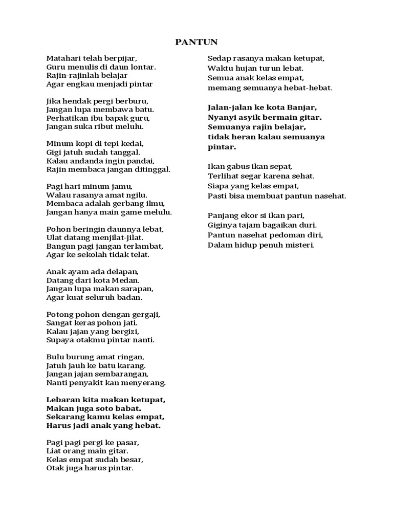 Minggu pagi ke kota padang makanan padang harus dibeli jika ada umur panjang semoga kita bisa bertemu lagi. Air laut sudah pasang ikan diburu burung elang. Pantun adat setelah membahas pantun pantun lainnya pada artikel sebelumnya kali ini kita akan mengupas mengenai pantun adat dimana kata adat sendiri yang terdengar ditelinga kita pasti suatu jati diri ciri khas budaya pada negara atau daerah tersebut. Selamat berpantun ria ya.