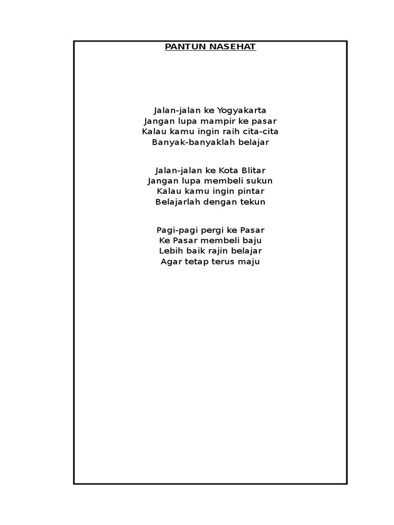 Pantun Pagi Pagi Pergi Ke Pasar