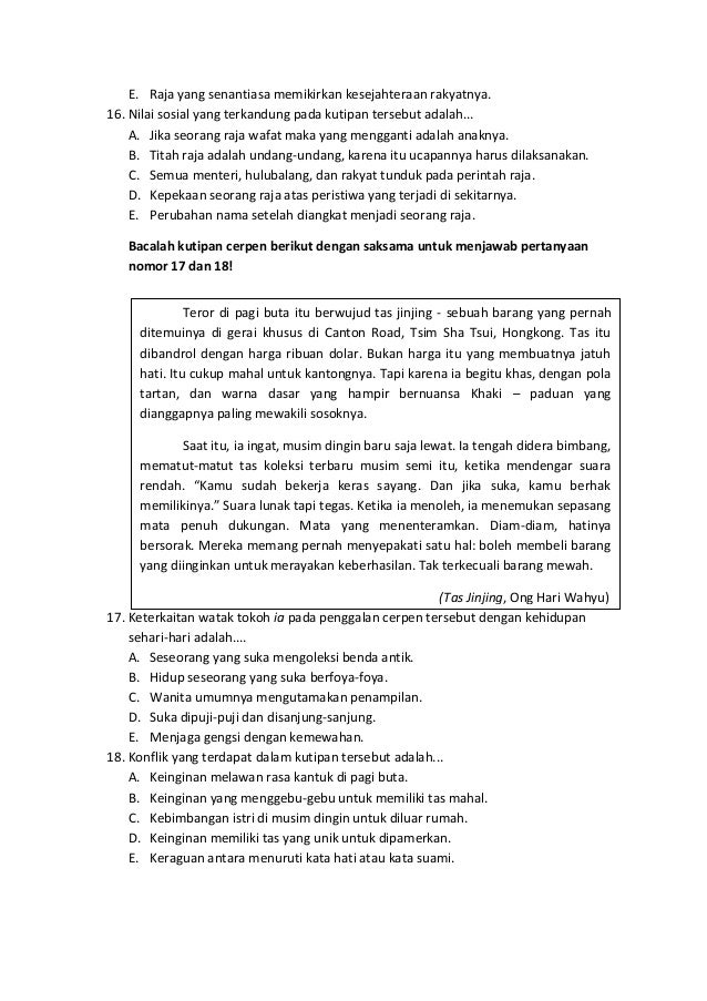 Jumlah soal sebanyak 50 butir pada setiap butir soal terdapat 5 lima pilihan jawaban. Bukan harga itu yang membuatnya jatuh hati. Tas itu dibandrol dengan harga ribuan dolar. Sebelum itu dia melihat seorang perempuan mondar mandir di depan rumah.